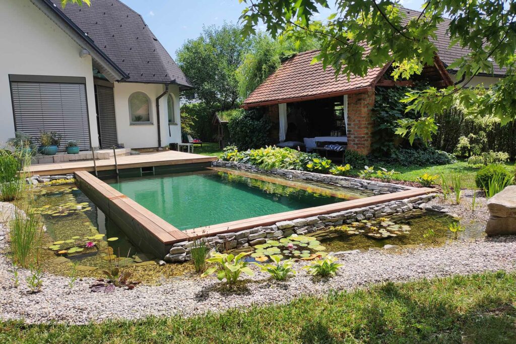 Za mnoge je idealno rješenje kombinacija oba sustava. U praksi to znači da uz prirodni bazen, čija je voda namijenjena za plivanje i ostaje potpuno čista, također postavljamo i zasebano jezero ili biotop koji funkcionira kao prirodni vrtni element. Jezero nadopunjuje bazen biljkama, vodeni cvijećem i malim životinjama koje mu daju pokret i život.